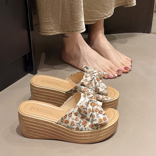 Women’s platform wedge sandals, new summer 2026 style, fashionable bow-tie platform sandals with one strap.