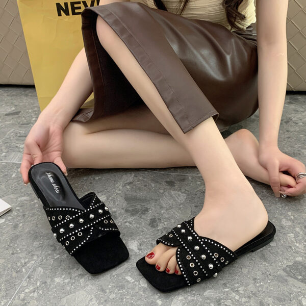 New Flats-Soled Back Hollow Shoes Rhinestone Lazy Toe Shoes