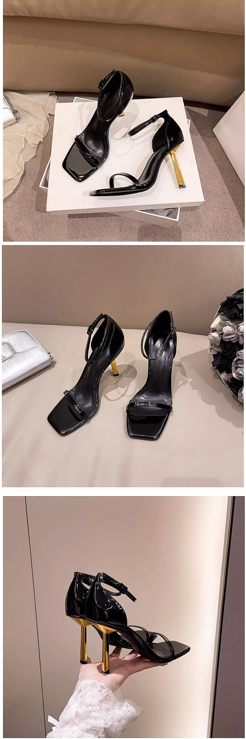 Be the first to review “Black one-strap new square head gold heel patent leather” Cancel reply