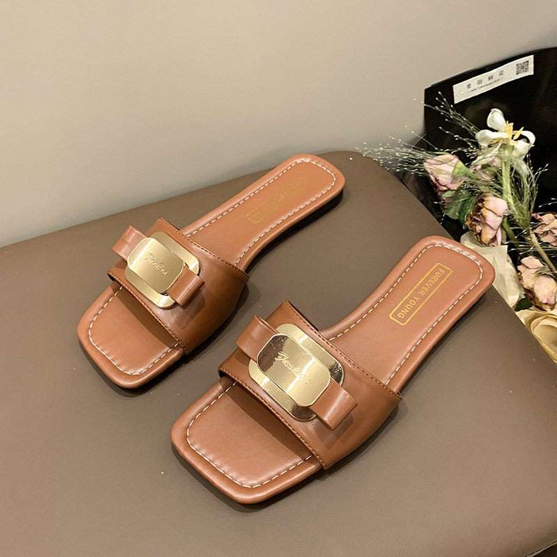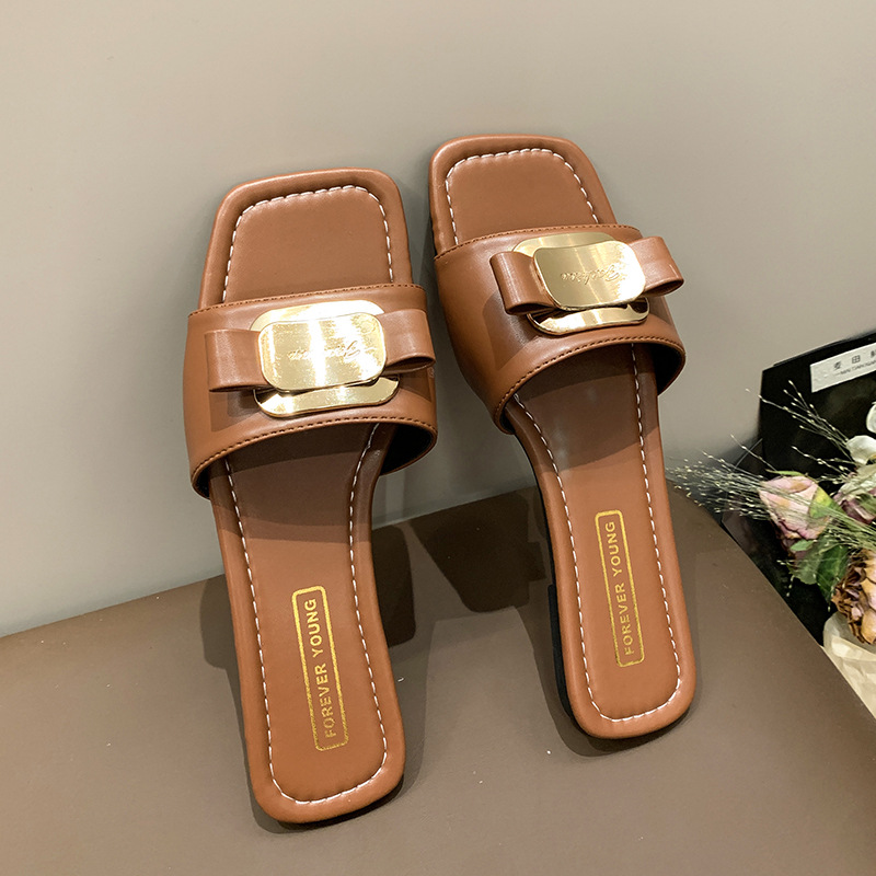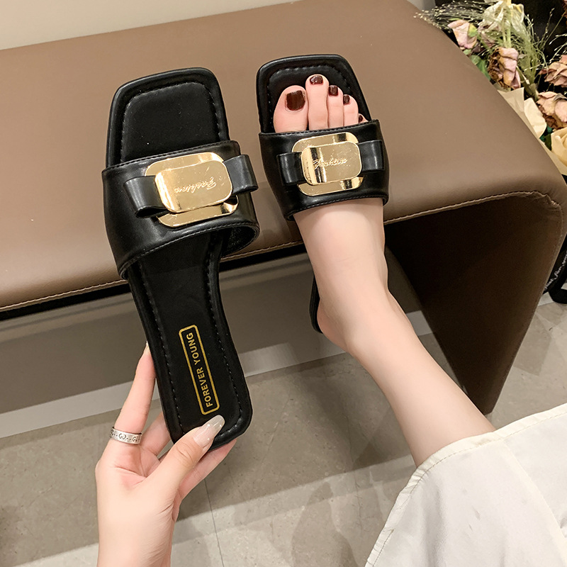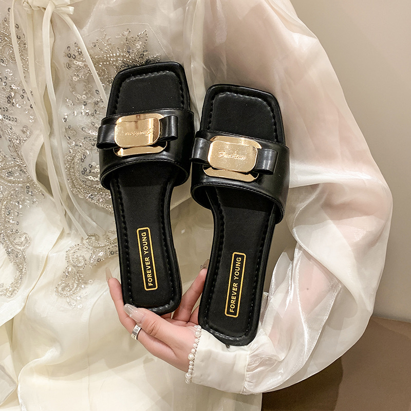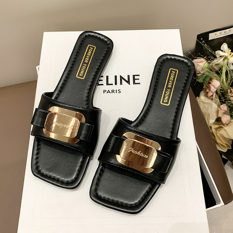 Casual flat slippers for women Metal buckle one-strap sandals for women