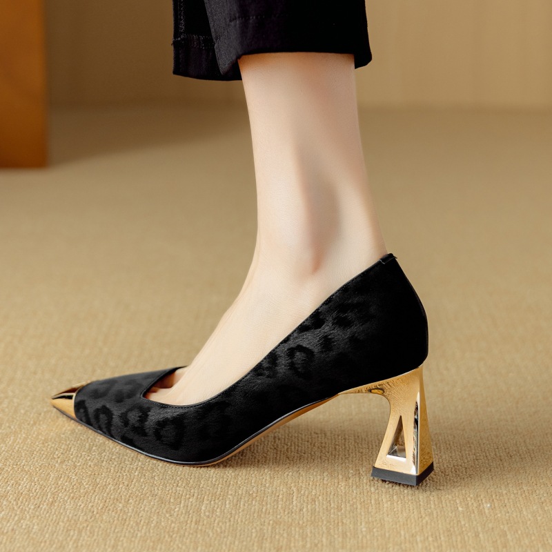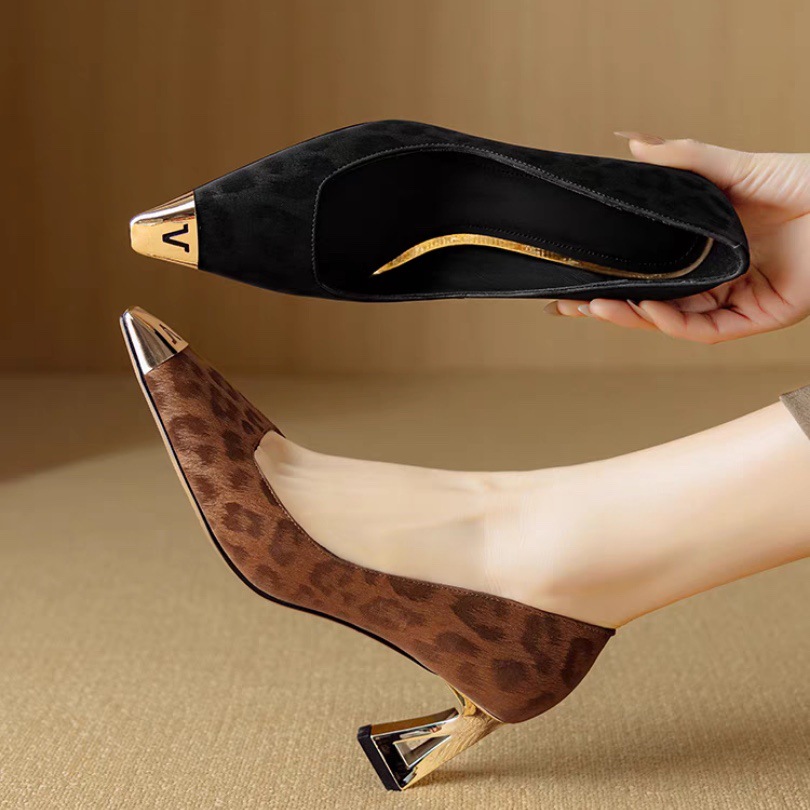 Chanel-Inspired Leopard Print Evening Shoes, Small Heel Women’s Shoes