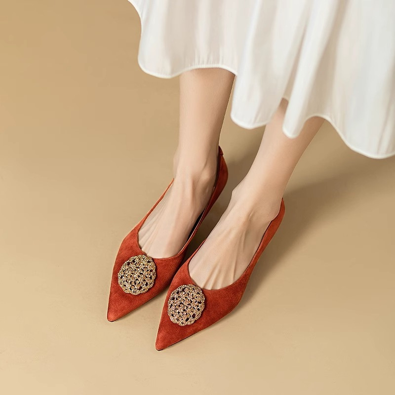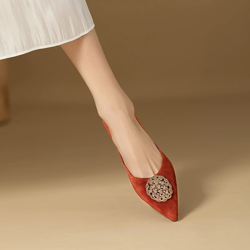French Retro Metal Buckle Flats Shoes for Women 2026 Spring and Summer Baotou Sandals Pointed Toe Elegant Pumps