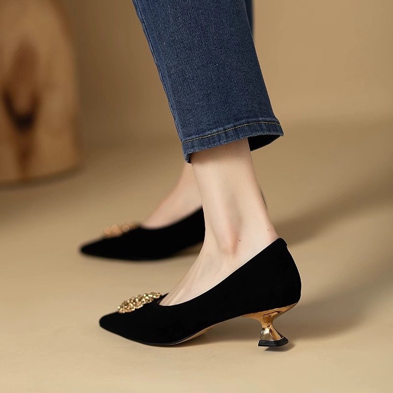 Be the first to review “Commuter French Suede Work Shoes Not Tired Feet Women’s Professional Thin Heel Small Size New Pointed Black Low Heel Shoes” Cancel reply