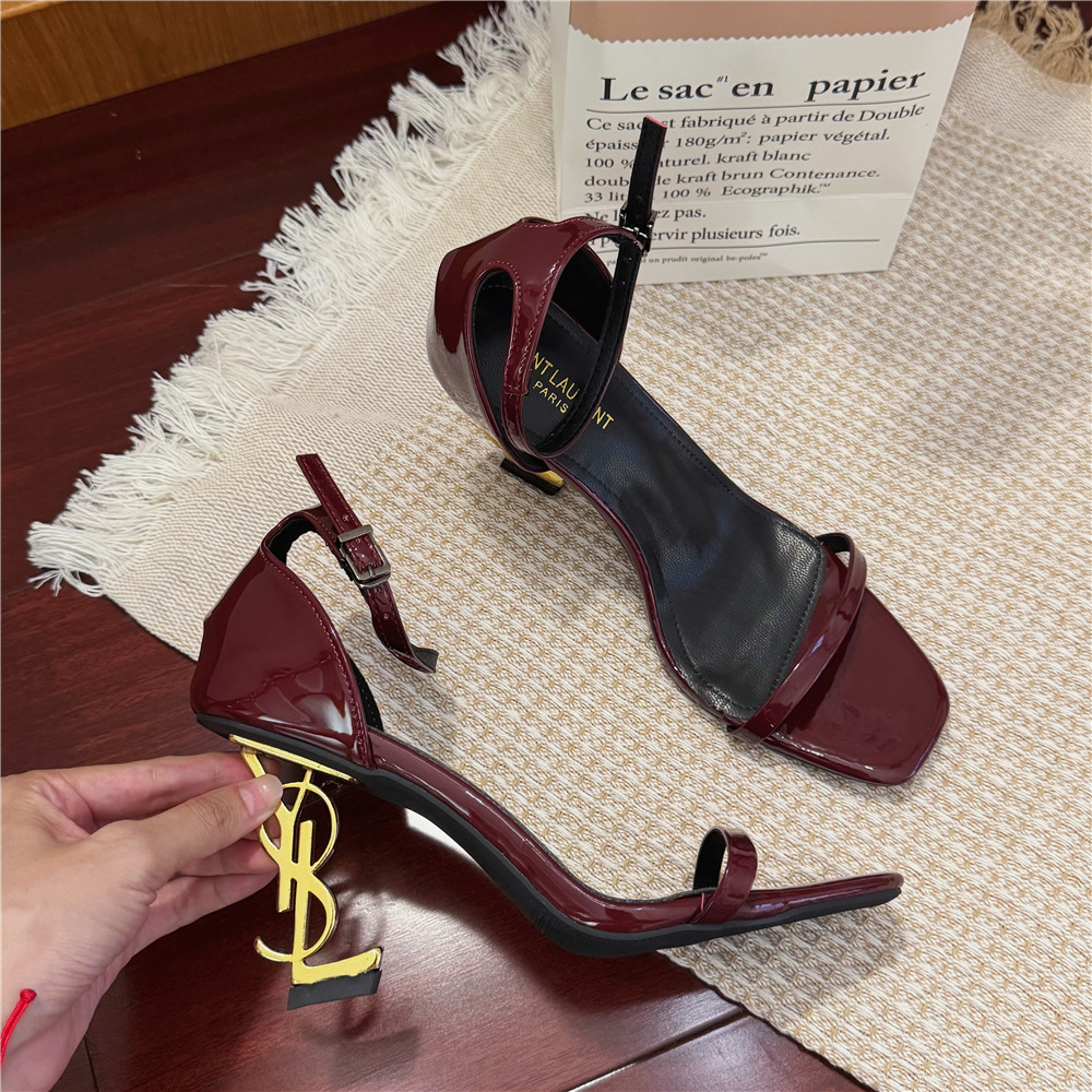 Cross-border foreign trade temperament one-strap black square head stiletto high-heeled sandals for women