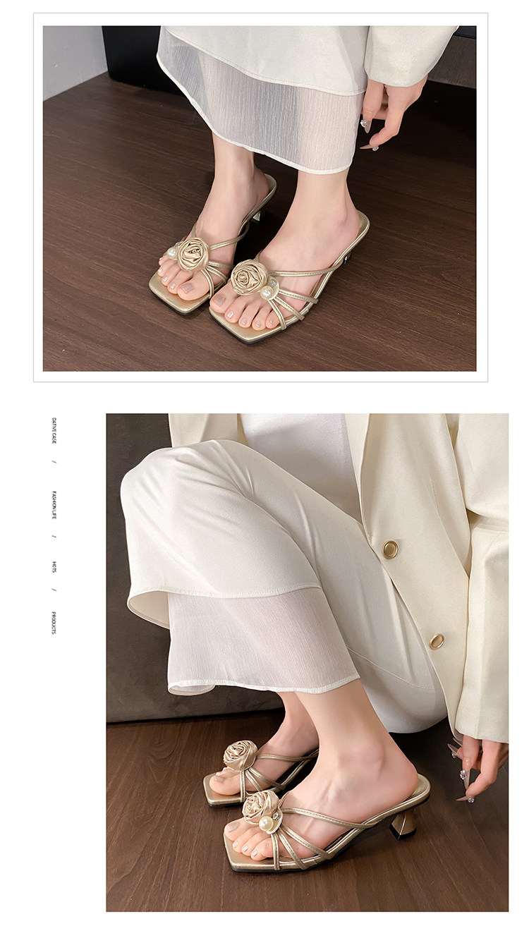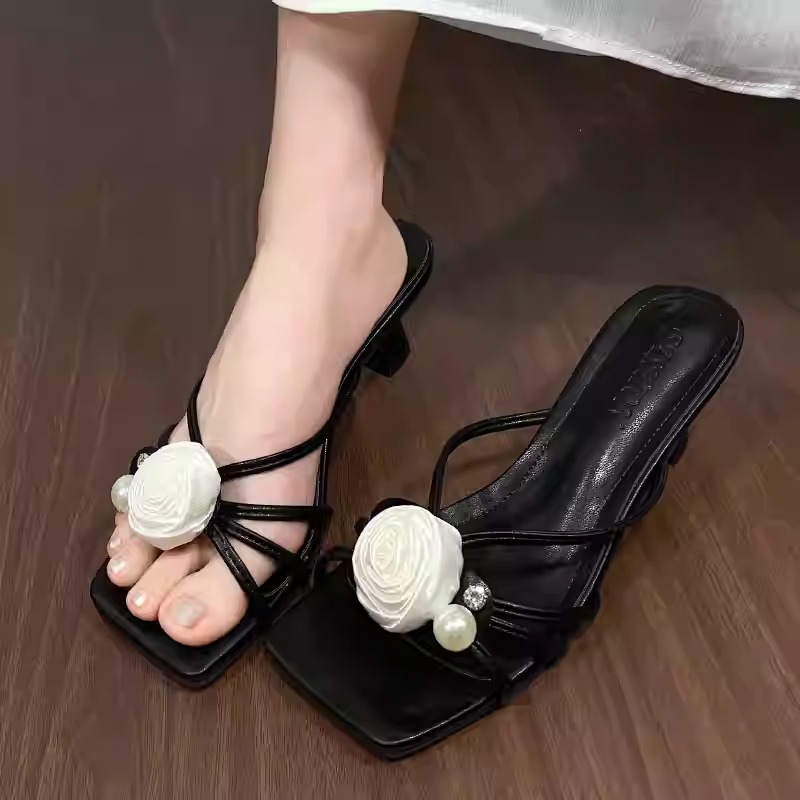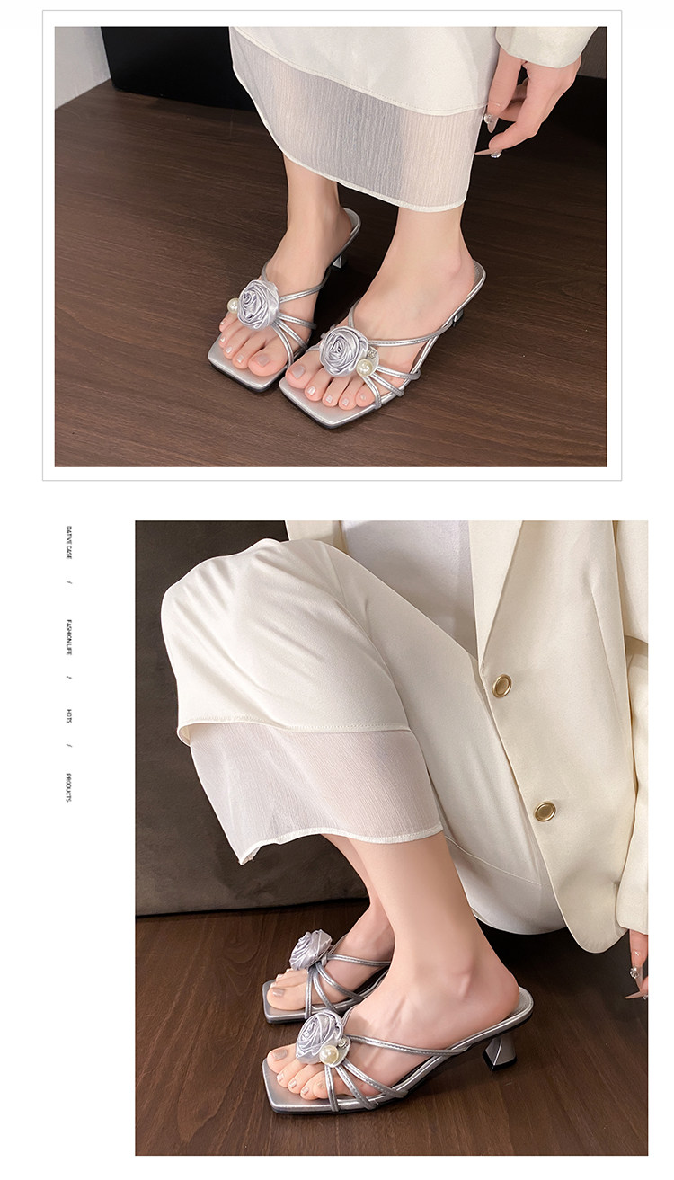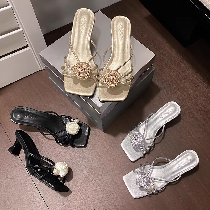 new Korean style flower temperament sandals French style with skirt high heel slippers