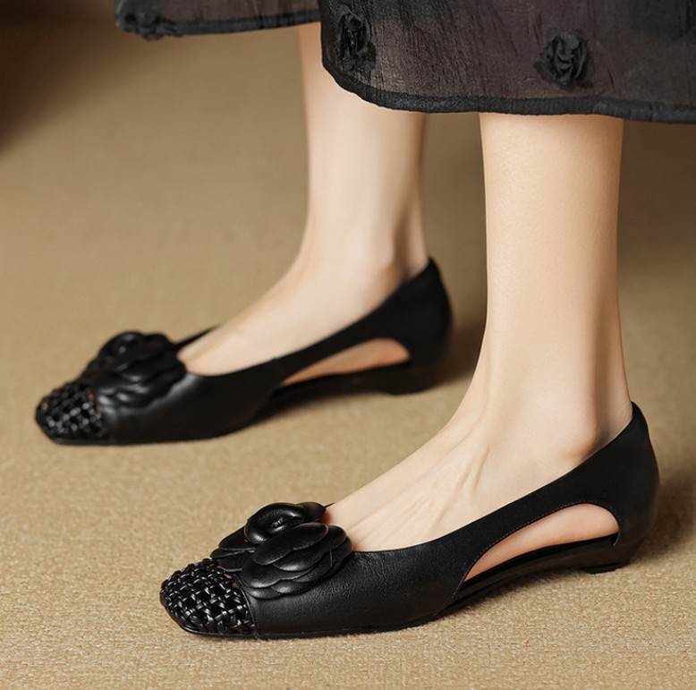 Be the first to review “French commuter camellia side hollow thick heel closed toe Roman sandals for women” Cancel reply