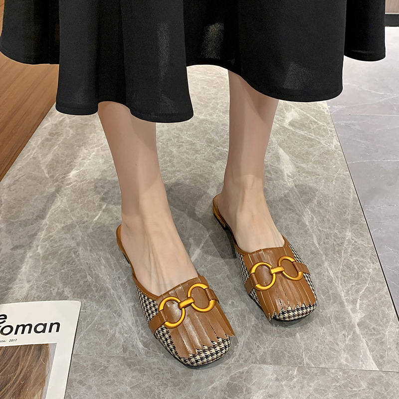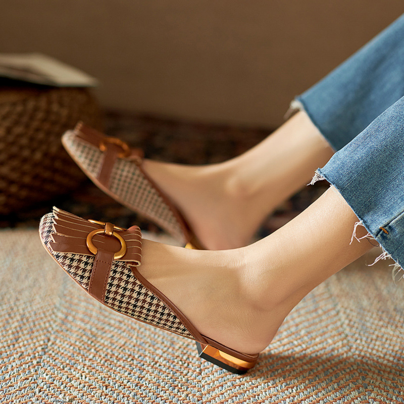 French Style Horse Buckle Baotou Half Slippers 2025