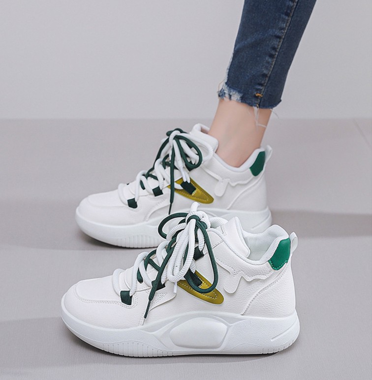 Korean style high-top white sneakers for women