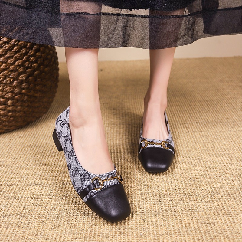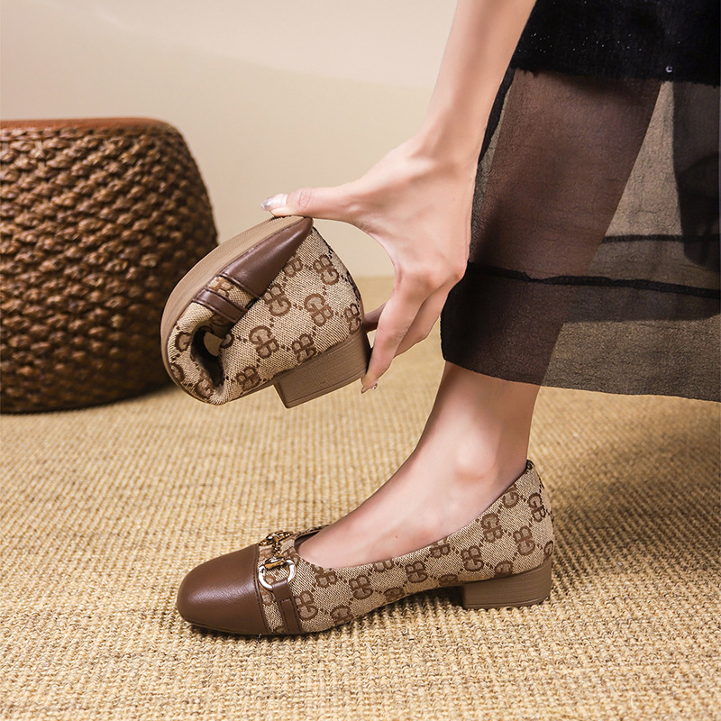 Internet Celebrity Versatile Square-Toe Soft-Soled Beanie Shoes for Women