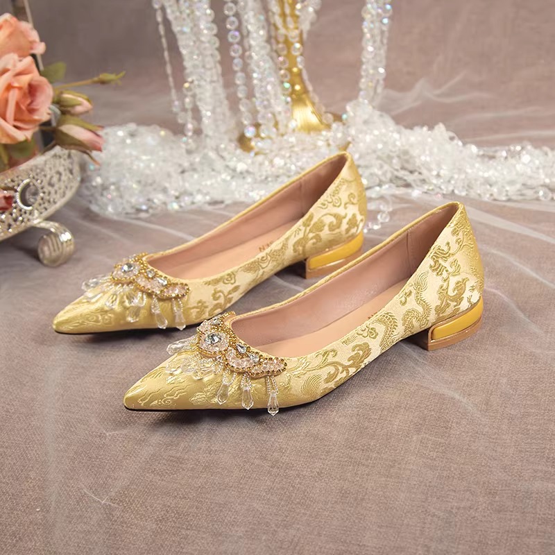 Be the first to review “New high-heeled shoes with stiletto heels, mid-heels, and small heels, featuring a gold pointed toe, perfect for brides and traditional Chinese weddings.”