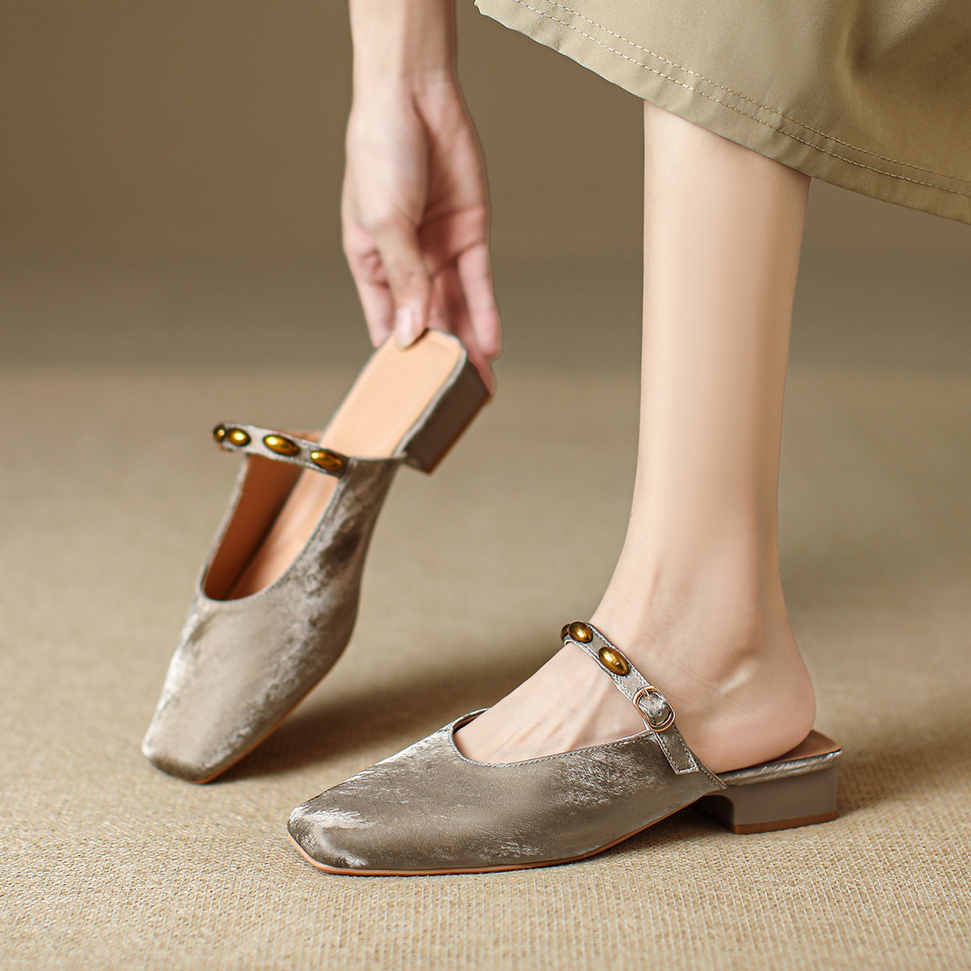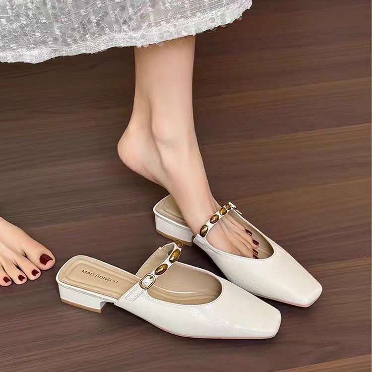 New Summer Heelless Square-Toe Mules, Toe-Toe Sandals and Slippers for Women, Summer Outer Wear, Thick-Heeled Half-Slip Shoes