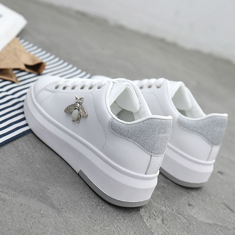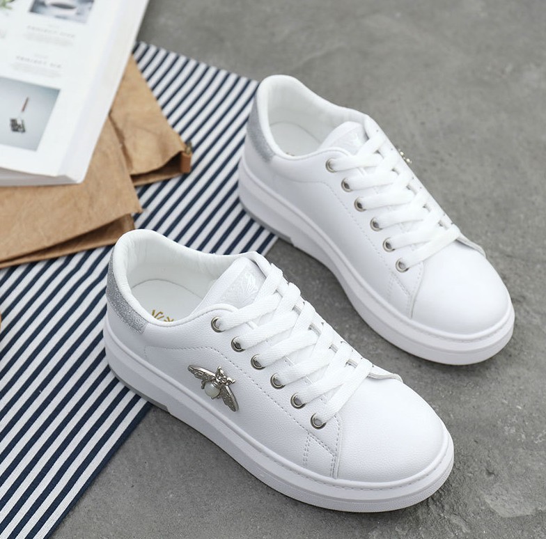 new versatile leather waterproof women’s student butterfly sneakers lace-up Korean version versatile white shoes for women