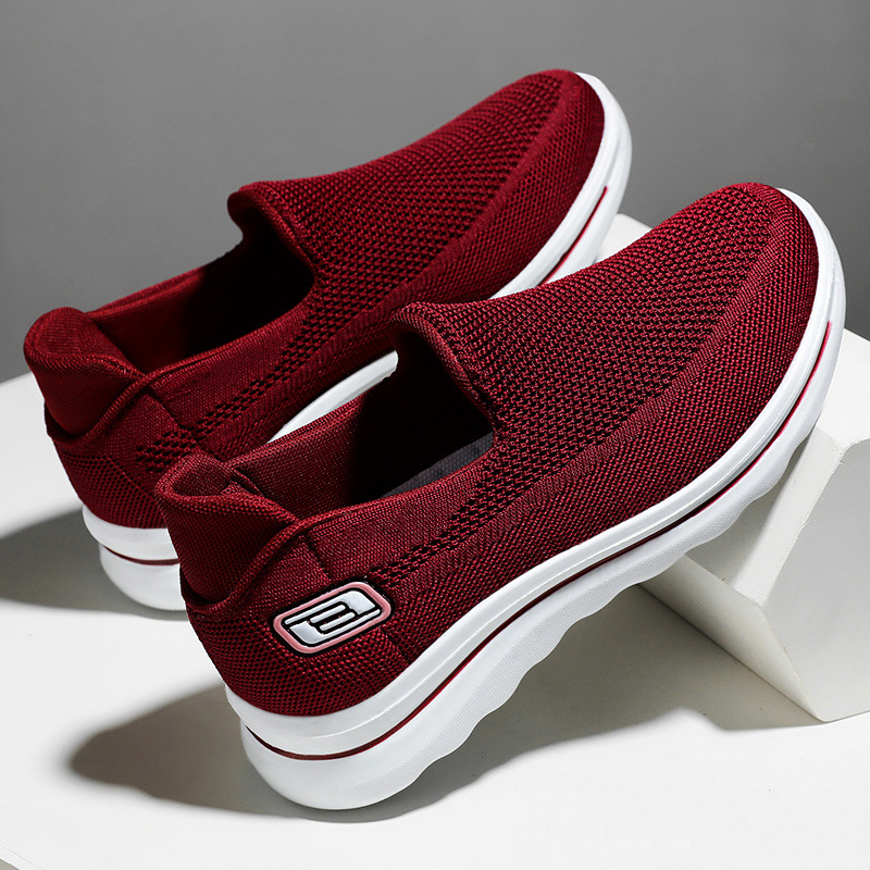 slip-on flat shoes for the elderly, non-slip soft soles, woven surface brand women’s shoes
