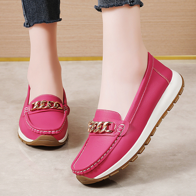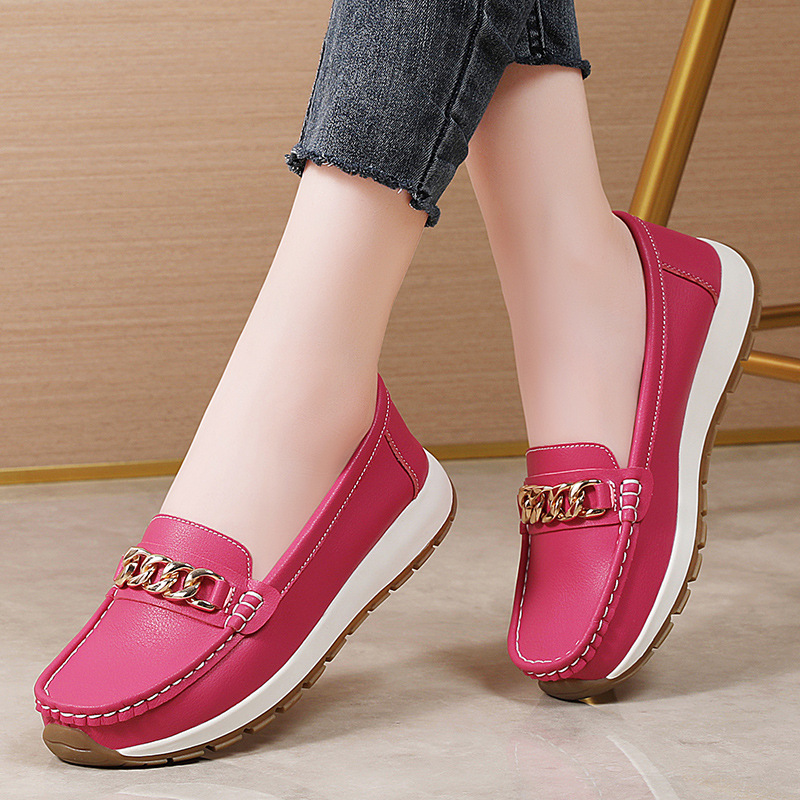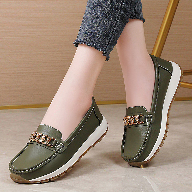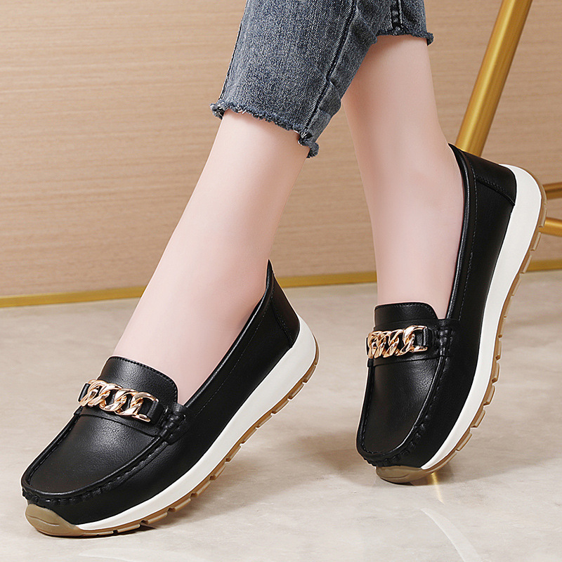 Wedge Flat Spring and Autumn Shallow Soft Leather Shoes Slip-on Mom Shoes