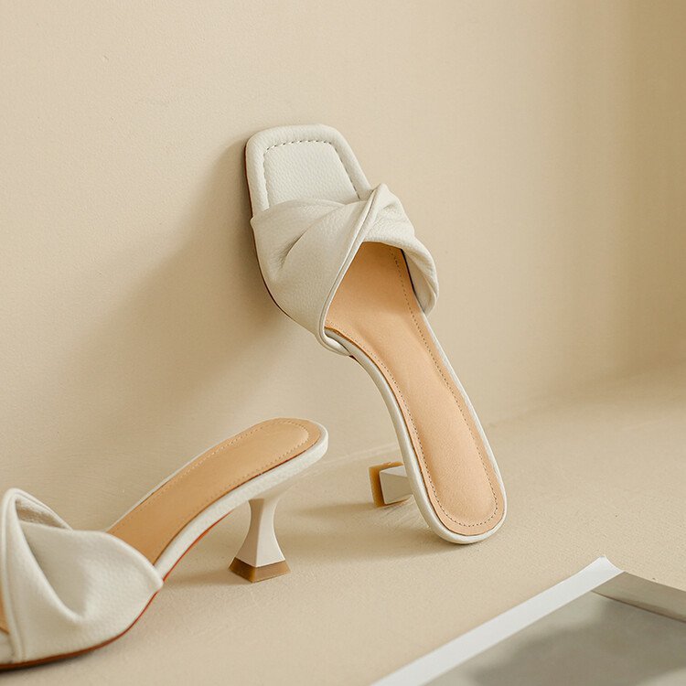 square toe stiletto heel sandals women’s summer outdoor fashion mid heel white high heels soft leather fairy style gentle