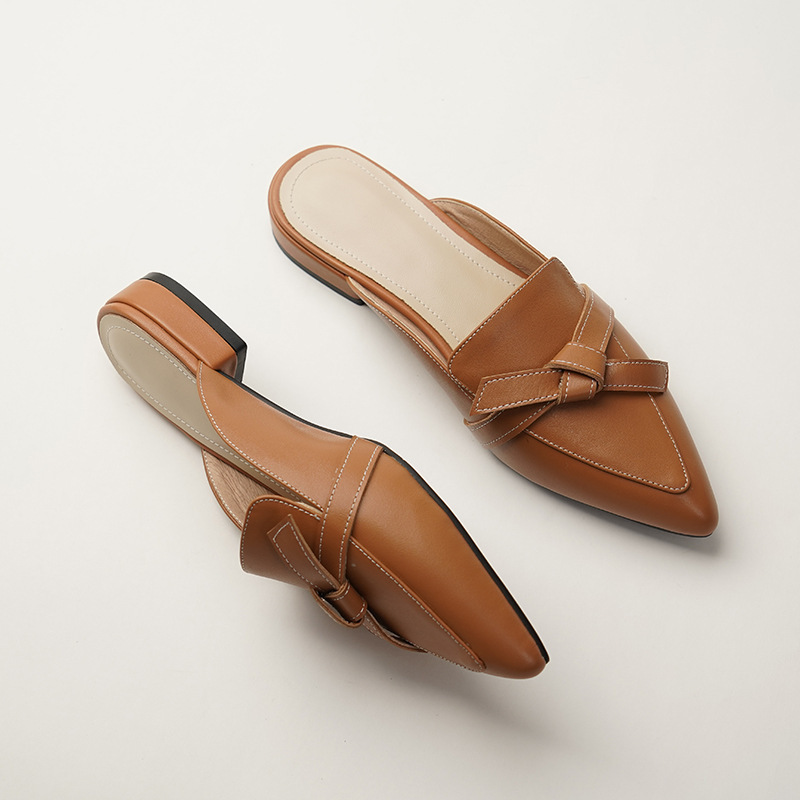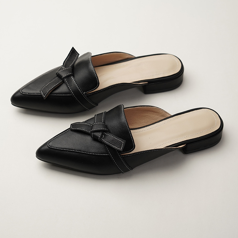 Summer New Style Pointed Toe Half Slippers Women’s Outer Wear Mueller Shoes Flat Low Heel Half Shoe Sandals