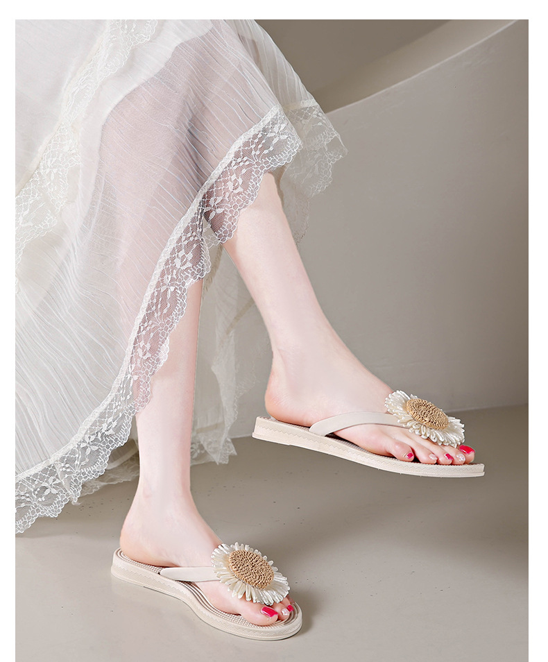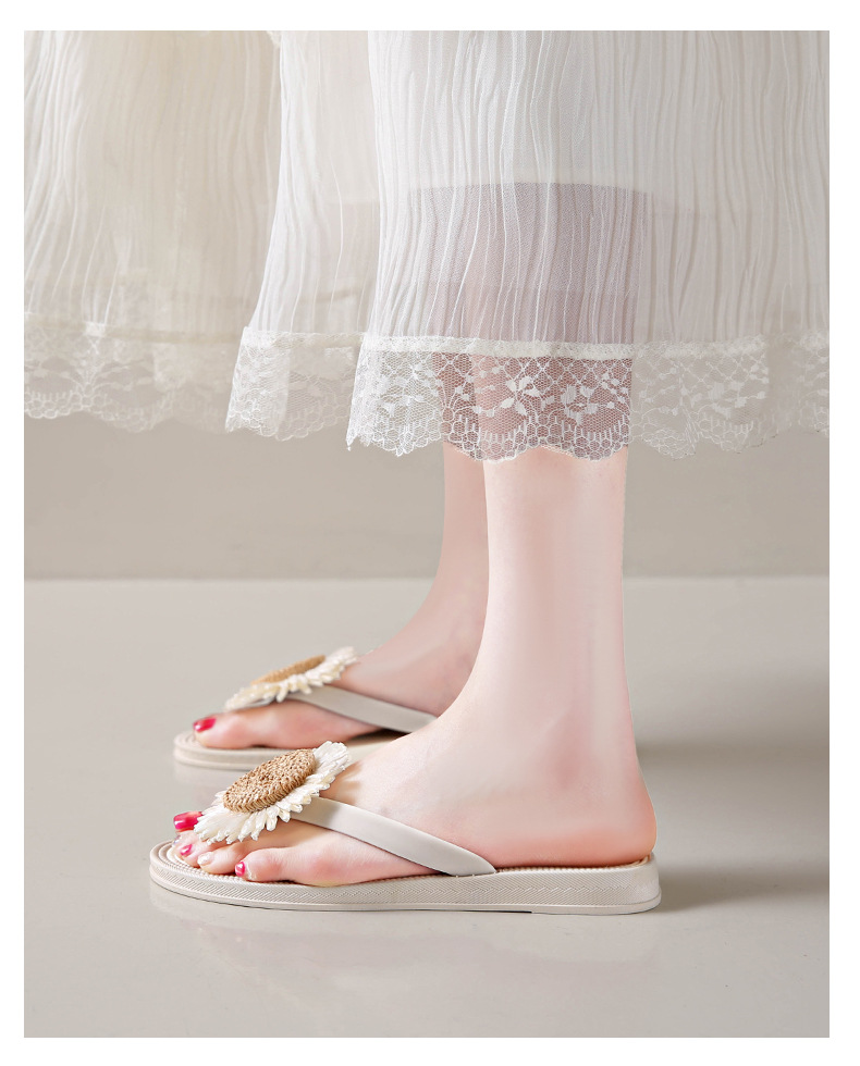 summer fashion straw flower flat bottom pastoral holiday beach flip flops