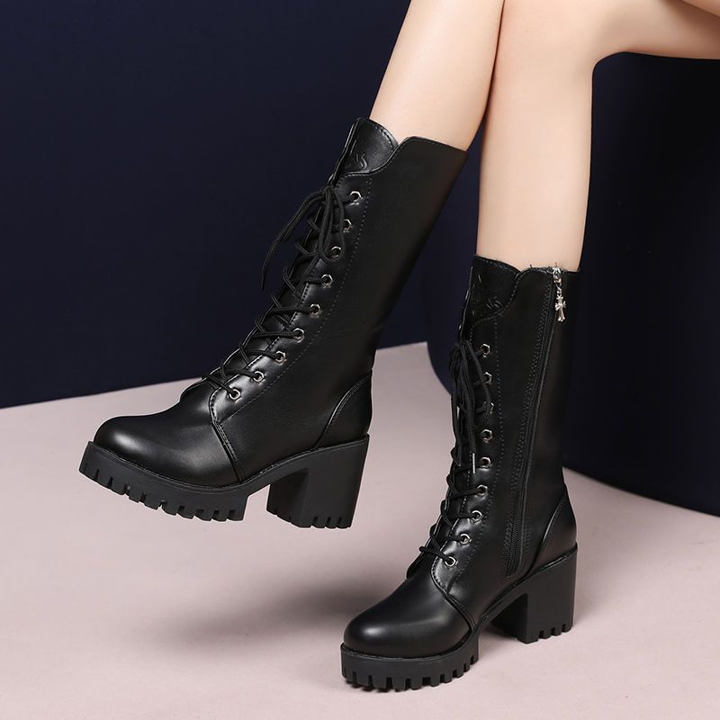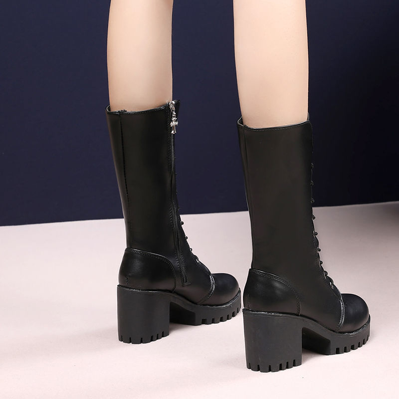 winter new style Martin boots women’s British style thick heel thick bottom mid-tube short boots