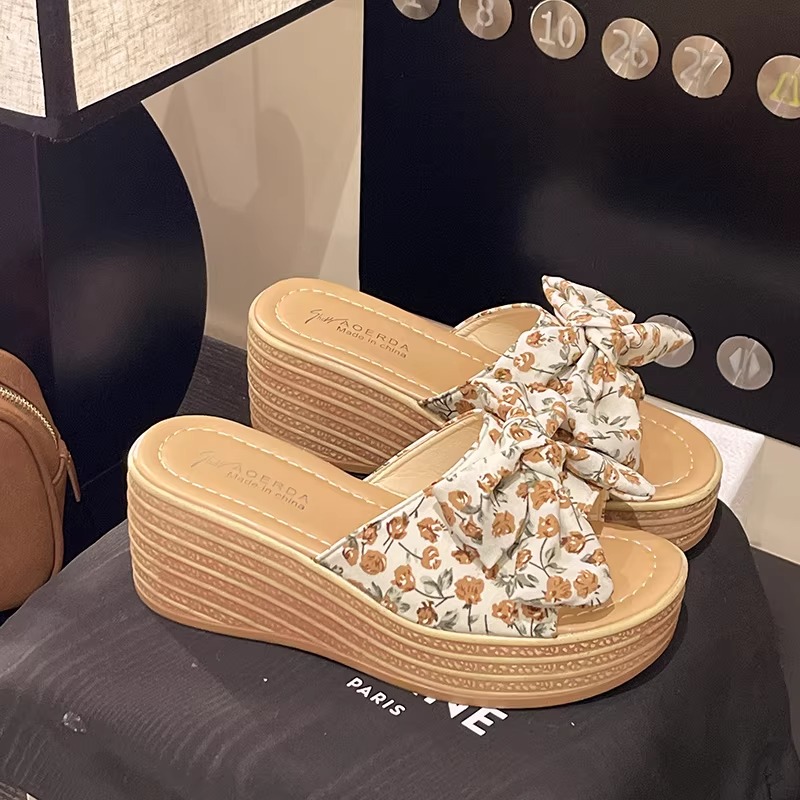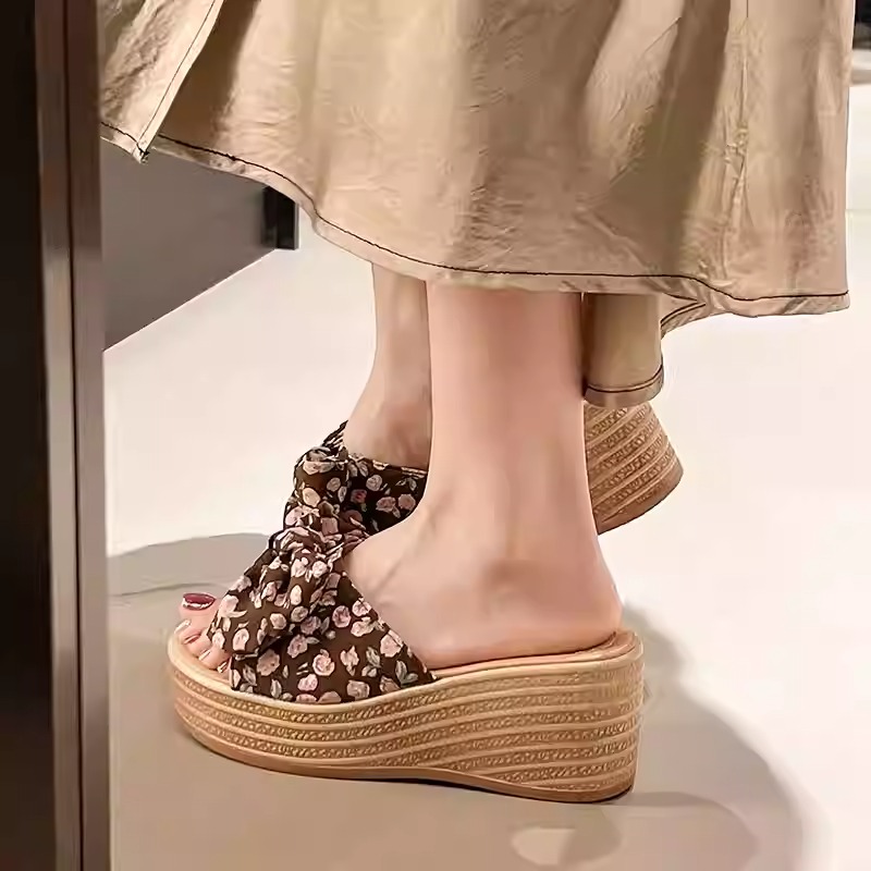 Women’s platform wedge sandals, new summer 2026 style, fashionable bow-tie platform sandals with one strap.