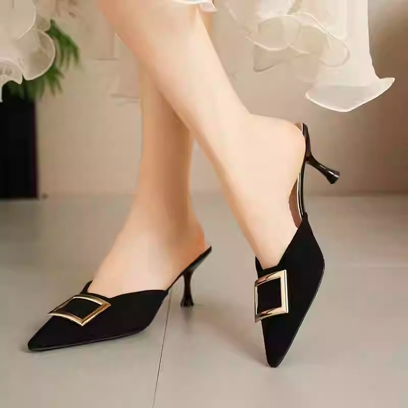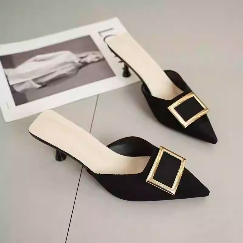 Be the first to review “Women’s summer mules with square buckle, suede, pointed toe, mid-heel, stiletto heel, low-cut, low-cut.”