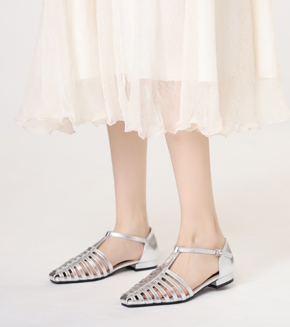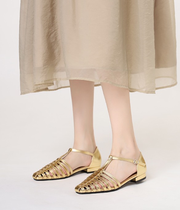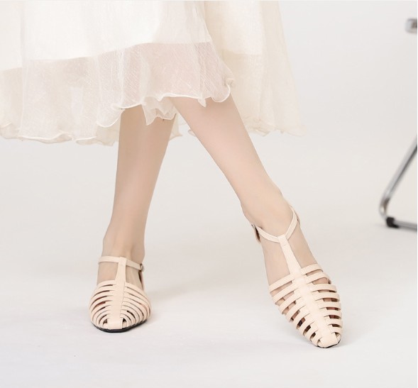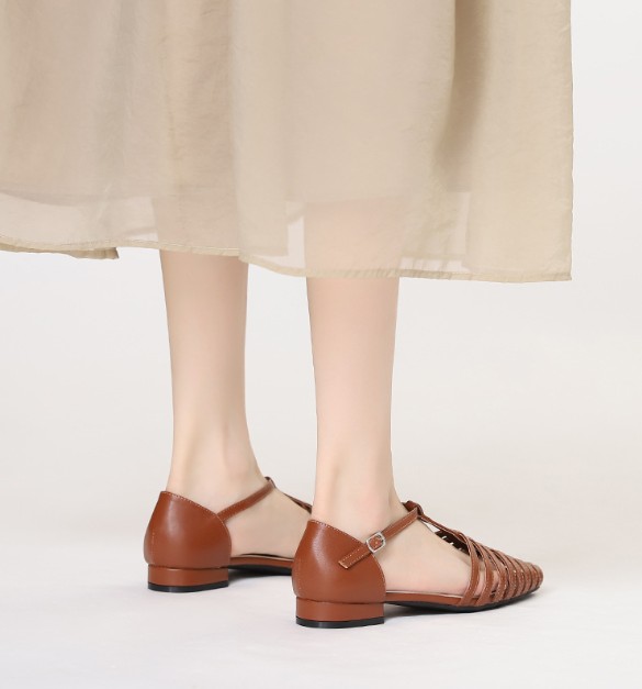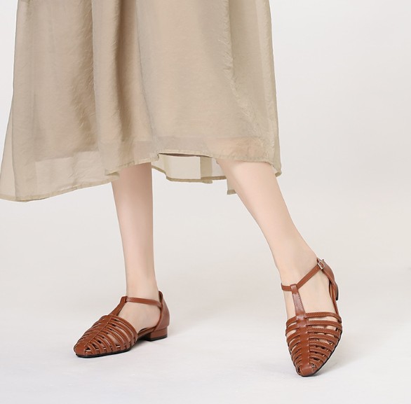 Women’s Summer Outer Wear Flats-Bottomed Toe Hollow Woven Pig Cage Shoes for Women